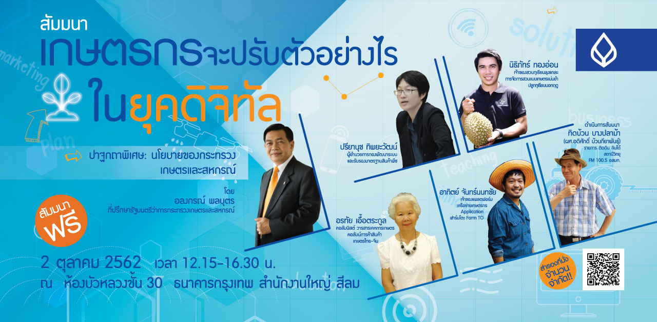14.00-16.15 น. การเสวนาหัวข้อ "เกษตรกรจะปรับตัวอย่างไร ในยุคดิจิทัล"