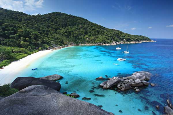 สิมิลัน เป็นภาษายาวี ซึ่งแปลว่า ‘เก้า’ ซึ่งมาจากจำนวนของเกาะน้อยใหญ่ทั้งหมดที่มารวมกันเป็น หมู่เกาะสิมิลันนั่นเอง ตั้งอยู่ในอุทยานแห่งชาติหมู่เกาะสิมิลัน จังหวัดพังงา ที่นี่ยังได้รับการขนานนามให้เป็นสวรรค์ของนักดำน้ำอีกแห่งในไทย และเป็นหนึ่งในสุดยอดทะเลไทยที่สวยงามติดอันดับ มีทั้งปะการังหลากสีสัน ฝูงปลา และที่จัดว่าหาชมได้ยากอย่างโลมา ในขณะที่บนฝั่งนั้นก็รายล้อมไปด้วยหาดทรายเนียนละเอียดนุ่มเท้า จนชาวโลกยกย่องให้หมู่เกาะแห่งนี้มีความงดงามติดอันดับ 1 ใน 10 ของโลก