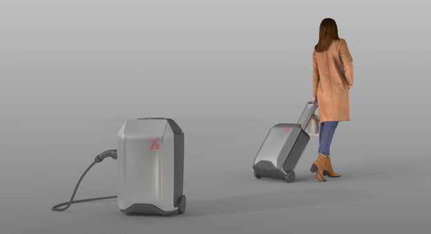 สำหรับ EV Power Bank เป็นแบตเตอรี่ขนาดที่สามารถพกพา ลากไปไหนมาไหนได้โดยสะดวก คล้ายกระเป๋าเดินทาง มีความจุแบตเตอรี่ไม่ต่ำกว่า 4KW น้ำหนักไม่เกิน 20 กิโลกรัม สามารถเติมไฟจากเต้าไฟธรรมดาในบ้านพักได้ภายใน 1.5 ชั่วโมง และเมื่อต่อเข้ากับระบบชาร์จภายในรถแล้ว จะทำให้รถวิ่งต่อไปได้อีกไม่ต่ำกว่า 50 กิโลเมตร หรือประมาณ 25% อีกทั้งยังเชื่อมต่อกับระบบ IoT ผ่านทางโทรศัพท์ของผู้ใช้ สามารถเช็คสถานการณ์ชาร์จ และ ป้องกันการสูญหายหรือโจรกรรมด้วยระบบล็อคขณะชาร์จไฟ และ ระบบ GPS เพื่อติดตามตำแหน่งพร้อมระบบตัดไฟผ่านมือถือของผู้ใช้ อีกทั้งในกรณีฉุกเฉินยังสามารถดึงไฟกับอีวีคันอื่นเข้ามาใน EV Power Bank เพื่อนำไปชาร์จรถอีวีอีกคันได้ด้วย