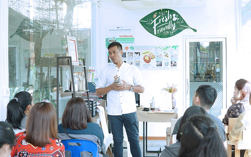 บอกว่า ทาง Fresh & Friendly Farm ไม่เพียงมีการจัดอบรมความรู้แก่ด้านการเพาะเห็ดออร์แกนิค