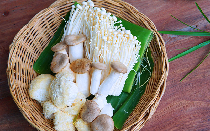เห็ดเข็มเงิน เห็ดเข็มทอง เห็ดนางฟ้าภูฐาน เห็ดนางรมฮังการี เห็ดขอนขาว และเห็ดหลินจือ