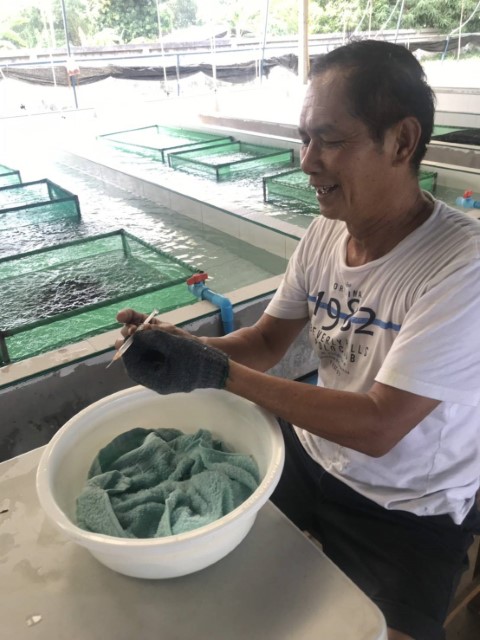 “ก่อนขายลูกปลาผมจะฝึกให้ปลากินอาหารเม็ดเป็นก่อน และบอกวิธีให้เกษตรกรที่ซื้อลูกปลาไปเลี้ยง ทำให้เลี้ยงง่าย และยุ่งยากน้อยกว่าการให้อาหารสด”