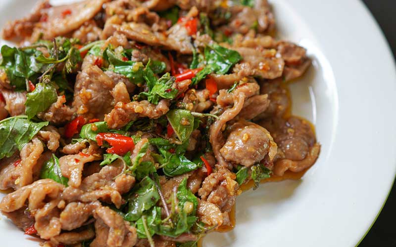 2. ผัดกะเพรา อาหารจานนี้มีส่วนผสมหลักคือ "ใบกะเพรา" ซึ่งถือเป็นผักสมุนไพรชั้นเลิศ ข้อมูลจากกรมการแพทย์แผนไทยและแพทย์ทางเลือก ระบุว่าใบกะเพรามีสารโอเรียนทิน (orientin) เป็นสารสำคัญที่มีศักยภาพในการป้องกันไม่ให้ไวรัสเข้าเซลล์ ช่วยลดโอกาสการติดเชื้อ จึงช่วยป้องกันไม่ให้ป่วยไข้จากเชื้อไวรัสได้