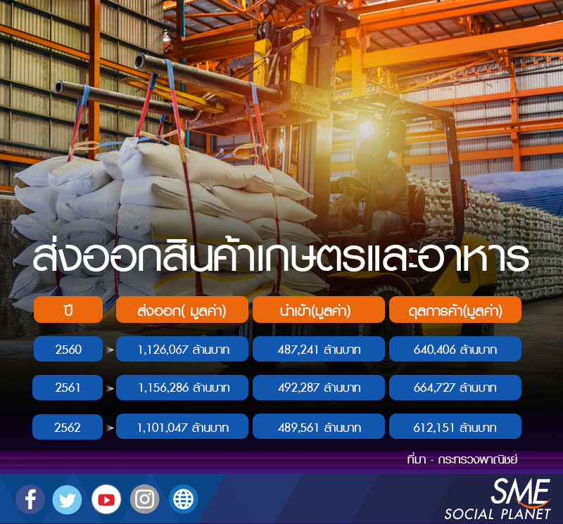 นำเข้ามูลค่า 489,561 ล้านบาท ดุลการค้า 612,151 ล้านบาท โดยสินค้าเกษตรอาหารที่มีมูลค่าการส่งออก