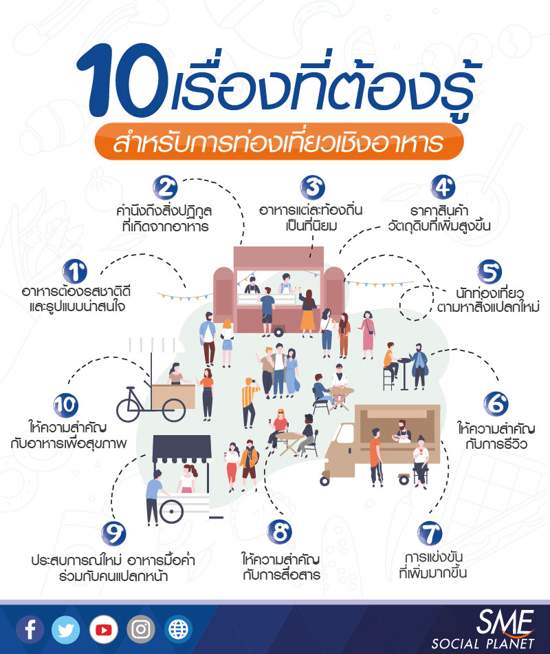 2019-2020 ซึ่งการท่องเที่ยวลักษณะเช่นนี้นักท่องเที่ยวมีวัตถุประสงค์เพื่อต้องการได้สัมผัสถึงประสบการณ์ทางด้านอาหารในแต่ละพื้นที่