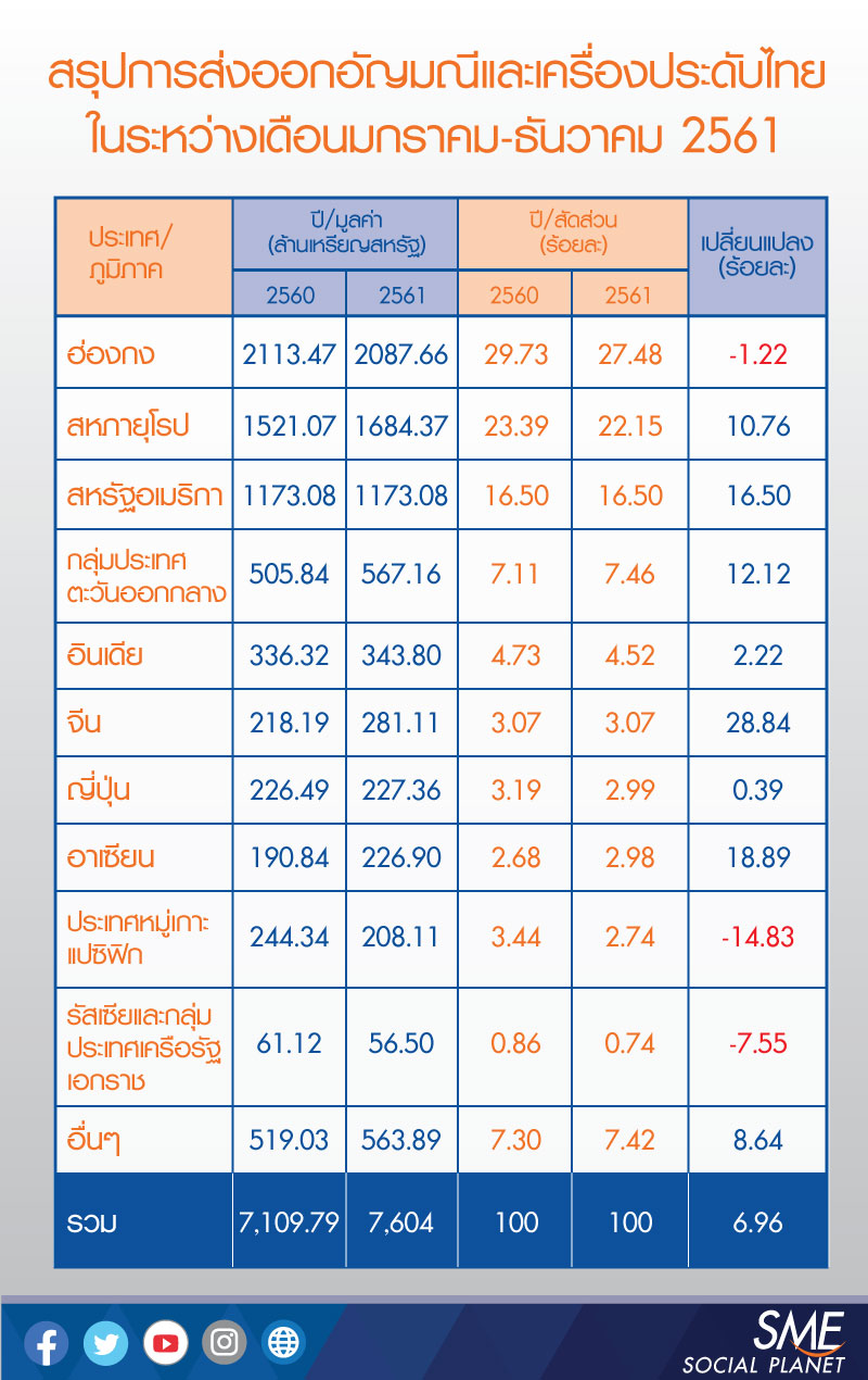 โดยไทยมีมูลค่าส่งออกราว 1,700 ล้านเหรียญสหรัฐฯ ซึ่งร้อยละ 40