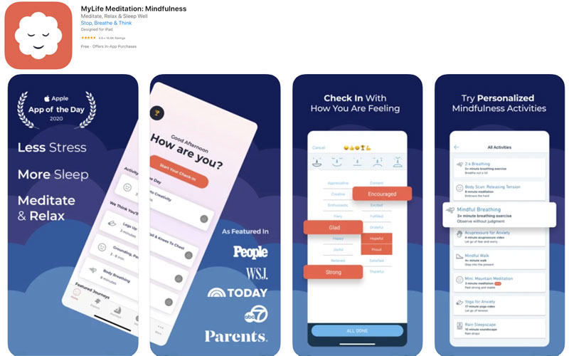 “ใจเป็นนาย กายเป็นบ่าว” การดูแลสุขภาพจิตจึงสำคัญไม่แพ้การดูแลสุขภาพกาย แอปฯ My Life Meditation นี้ จะเป็นเหมือนตัวช่วยให้คุณได้เข้ามาเช็คอินอารมณ์ในแต่ละวันว่า วันนี้เป็นอย่างไรบ้าง? พร้อมแนะนำกิจกรรมที่จะช่วยปรับสมดุลให้คุณผ่อนคลายและอารมณ์ดีขึ้น เช่น ชาเลนจ์ในการทำสมาธิฝึกลมหายใจ มีแบบฟอร์มตอบคำถามง่ายๆ เพื่อช่วยปลดล็อคความรู้สึกในจิตใจ ฯลฯ เสียดายที่ยังไม่รองรับภาษาไทย เลยอาจจะต้องใช้แบบภาษาอังกฤษกันไปก่อน