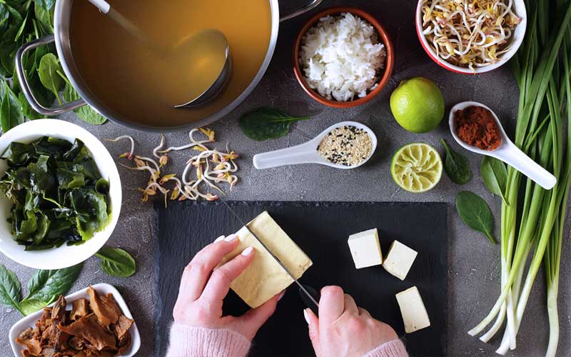 เป็นอาหารหลักทดแทนเนื้อสัตว์เพราะเต้าหู้เป็นอาหารที่อุดมด้วยโปรตีนสูง