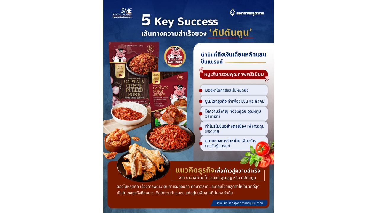 5 Key Success เส้นทางความสำเร็จของ ‘กัปตันตูน’ นักบินที่ทิ้งเงินเดือนหลักแสน ปั้นแบรนด์ ‘หมูเส้นกรอบคุณภาพพรีเมียม’