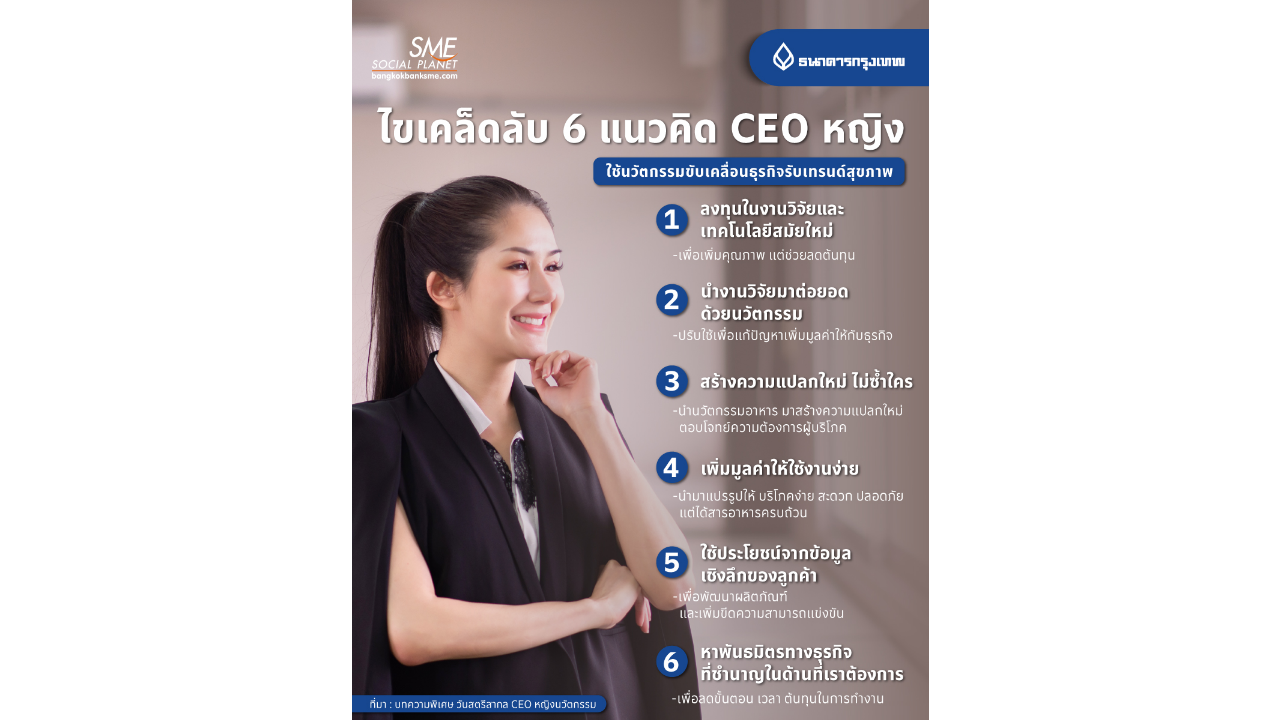 ไขเคล็ดลับ 6 แนวคิด CEO หญิง ใช้นวัตกรรมขับเคลื่อนธุรกิจรับเทรนด์สุขภาพ