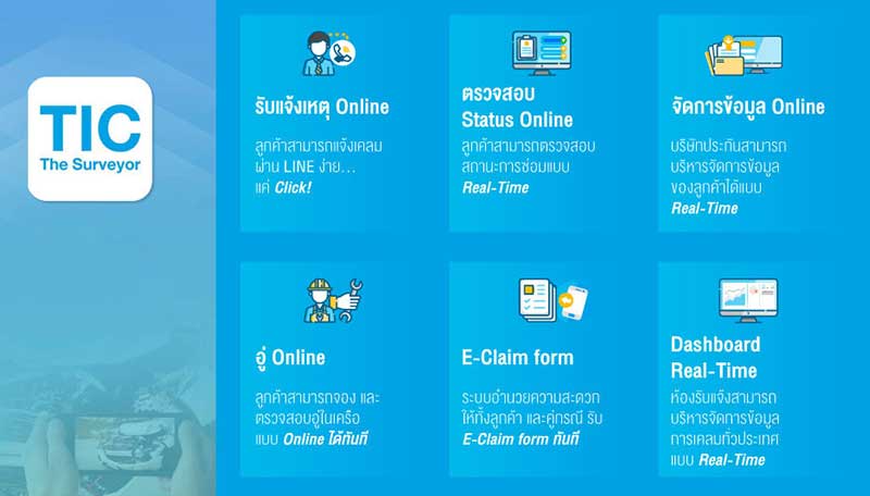แพลตฟอร์มดิจิทัล TIC The Surveyor ถูกพัฒนาขึ้นเพื่อเพิ่มความคล่องตัวให้แก่ลูกค้า, ทีมสำรวจภัยและพนักงาน พร้อมลดขั้นตอนความยุ่งยากของกระบวนการแจ้งเคลม และลดการจัดทำเอกสารรูปแบบเดิมๆ