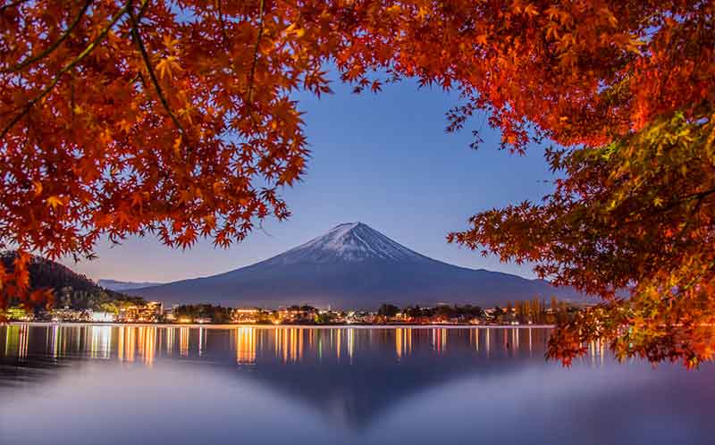 ฤดูนี้ถ้าจะมาดูความสวยงามของภูเขาไฟฟูจิขอแนะนำให้เช่ารถขับไปเรื่อย ๆ เพื่อไล่ดูสีสันของใบไม้เปลี่ยนสีเคียงคู่กับภูเขาไฟฟูจิในมุมต่าง ๆ จะได้เห็นภาพโรแมนติกหลาย ๆ มุมรอบ ๆ บริเวณทะเลสาบทั้ง 5