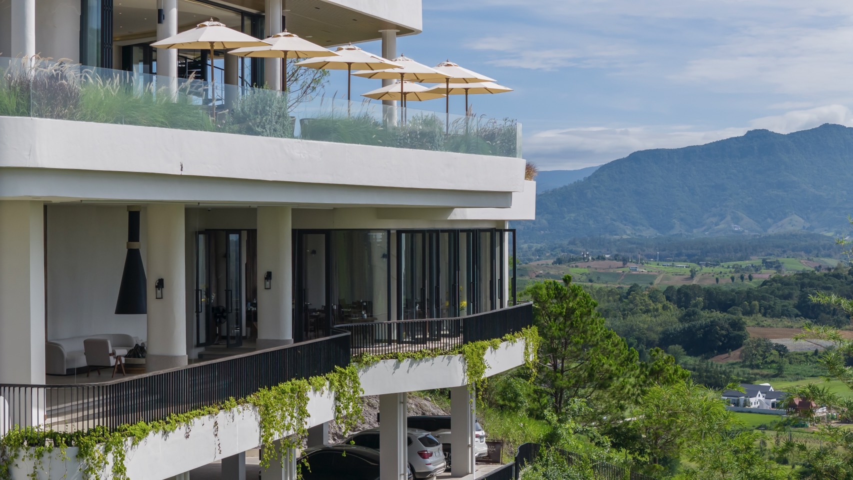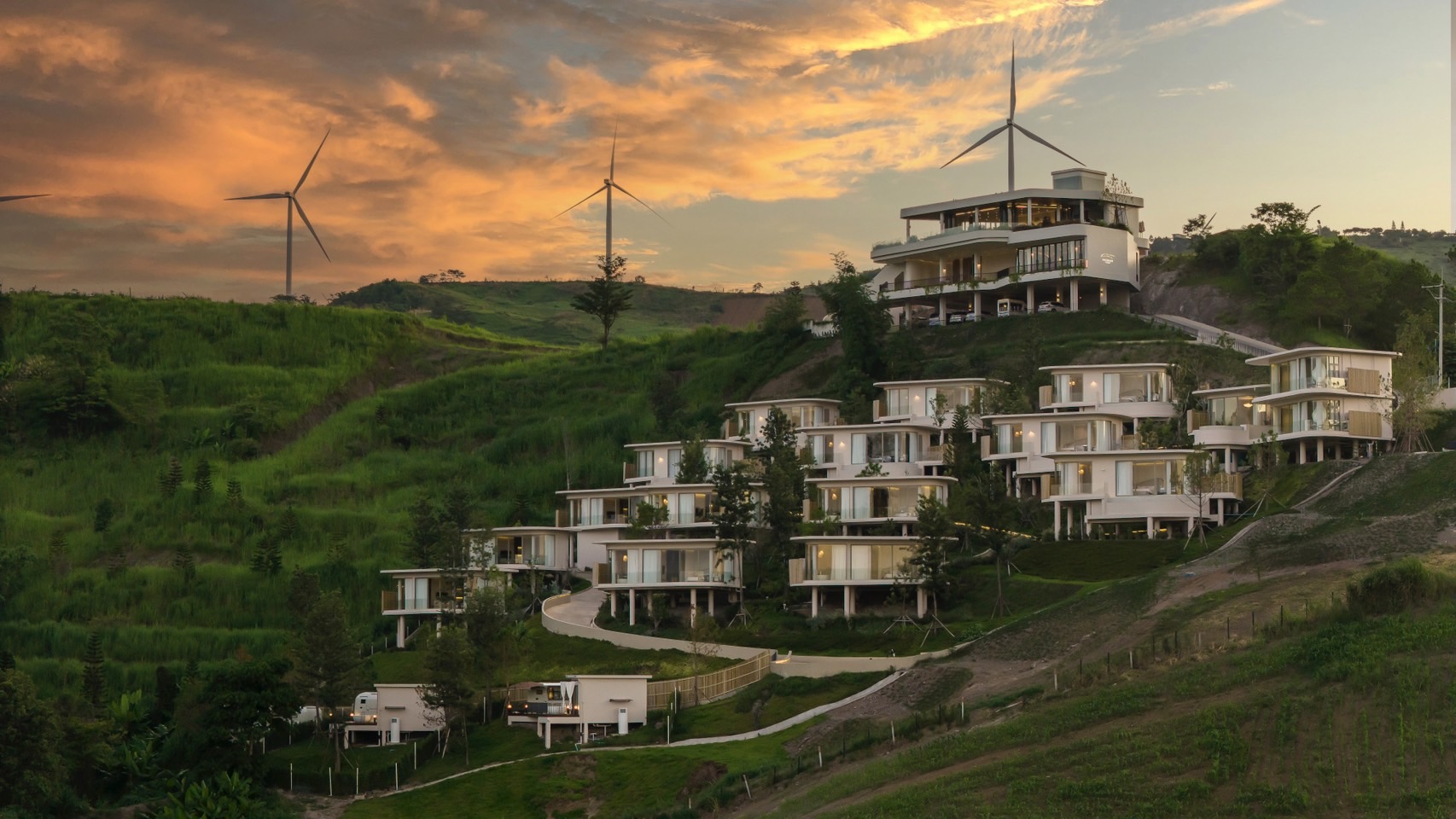 หากพูดถึงที่พัก ที่ตอบโจทย์สไตล์ผู้ชื่นชอบการท่องเที่ยวและพักผ่อนท่ามกลางธรรมชาติ มีวิวทิวเขา ห้อมล้อมด้วยแมกไม้ เหมือนได้พักพิงในแดนดินอันรื่นรมย์ จากแนวคิดทางสถาปัตยกรรมนำมาสู่การใช้เส้นโค้ง กลมมน และโทนสีขาว รังสรรค์เป็นสิ่งปลูกสร้างที่ผสมผสานสิ่งรอบข้างได้อย่างลงตัว ไม่บดบังทัศนียภาพ เพิ่มความเจริญตา ทันสมัย ทั้งยังให้ความรู้สึกเป็นส่วนตัว เป็นจุดหมายปลายทางที่พักแห่งใหม่ที่ใครก็อยากไปเยือนสักครา