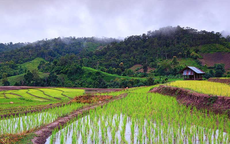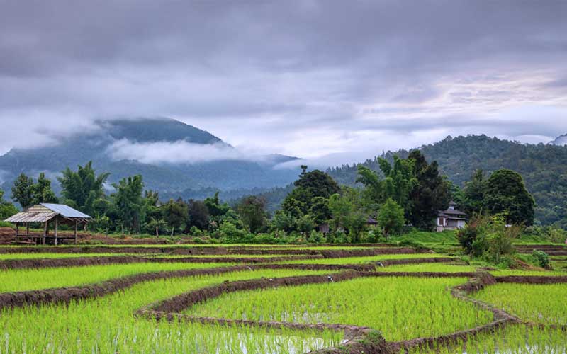 สลับกับขุนเขาที่โอบล้อมหมู่บ้าน กลายเป็นภาพที่งดงามสุดบรรยาย
