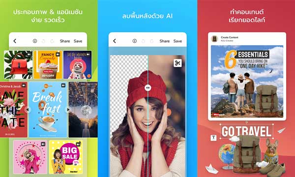 พร้อมกันนี้ ยังมีตัวอย่างงานออกแบบหลายสไตล์ เป็นไกด์ไลน์ไอเดียสำหรับสร้างสรรค์งานของผู้ใช้อย่างง่ายดาย โดยสามารถดัดแปลงจากตัวอย่างงานออกแบบของแอปพลิเคชันที่มีหลากหลายสไตล์ ครอบคลุมทุกการใช้งาน ช่วยสร้างภาพเพื่อการโฆษณาให้ดูดีแบบมือโปรได้โดยไม่จำเป็นต้องมีทักษะการออกแบบ ตลอดจนสามารถปรับขนาดงานออกแบบให้สามารถนำไปใช้กับแพลตฟอร์มต่างๆ ได้อย่างง่ายดาย