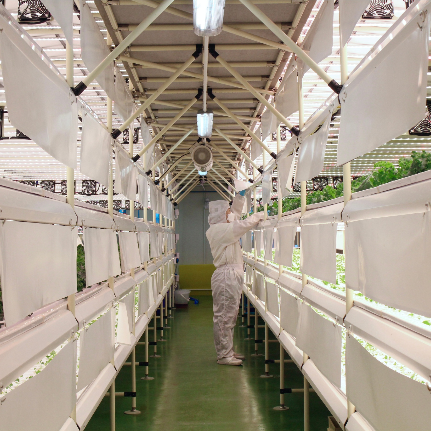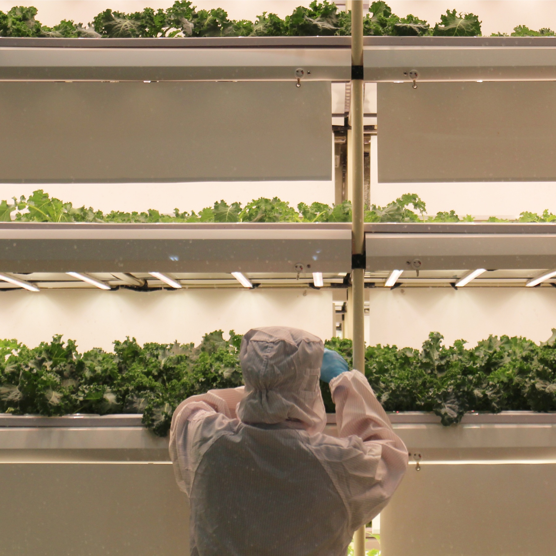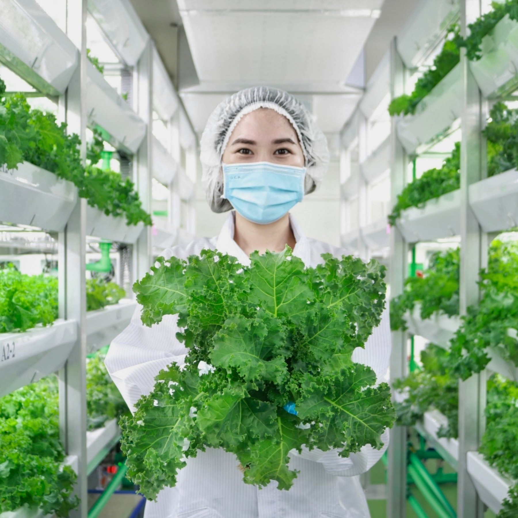 ผักที่ปลูกส่วนใหญ่จะเป็นพวกผักสลัด เนื่องจากเป็นที่นิยมและจำหน่ายได้ในราคาสูง เช่น กรีนคอส, ฟิลเล่ย์ไอซ์เบิร์ก, ผักกาดหอมบัตเตอร์เฮด และกรีนโอ็ค แต่ที่ได้รับความนิยมมากที่สุดในขณะนี้ คือ ‘คะน้าใบหยิก’ เป็นผักในตระกูลเดียวกันกับคะน้า กะหล่ำปลี และบร็อคคอรี่ แตกต่างกันที่คุณค่าทางอาหาร ซึ่งจะมีวิตามิน B2 และแร่ธาตุหลายชนิดที่เป็นประโยชน์ต่อการควบคุมสมดุลของกรด-เบสในกระแสเลือด ซึ่งผู้บริโภคนิยมนำมารับประทานสด หรือปรุงเป็นสลัด แต่ต้องปลูกในอุณหภูมิ 20-25 องศาเซลเซียส จึงทำให้ประสบปัญหาของสภาพอากาศในเมืองไทย ซึ่ง LED Grow Light สามารถแก้ Pain Point ตรงนี้ได้อย่างตรงจุด