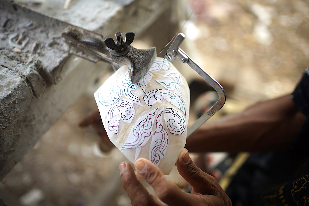 โดยเปลือกหอยแต่ละชนิดจะมีไฟประกายที่งดงามต่างกัน การสะท้อนสีที่หลากหลายมากน้อยตามชนิดของเปลือกหอยที่ช่างเลือกใช้ เปลือกหอยที่มีไฟดีจะมีราคาสูง บางชนิดไฟไม่ดีเท่า ราคาจะต่ำกว่า เมื่อนำมาผลิตเป็นชิ้นงานแล้วจะทำให้ผลงานมีราคาแพง หรือถูกกว่าตามไปด้วย จึงกล่าวได้ว่า เปลือกหอยเป็นส่วนหนึ่งของการกำหนดราคาสินค้า