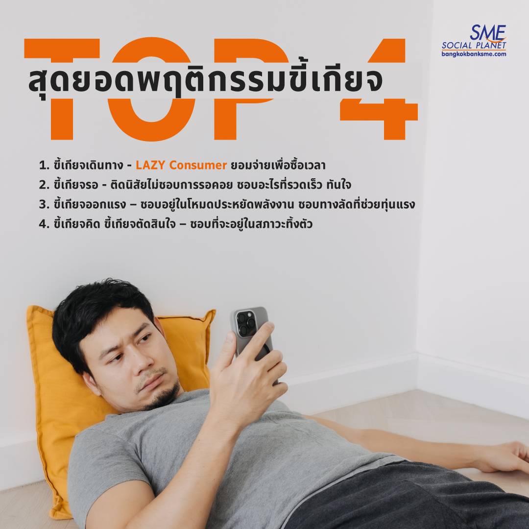 • ขี้เกียจรอ – ในยุคดิจิทัลที่ทุกอย่างรวดเร็ว ทันใจไปหมดอย่างทุกวันนี้ ส่งผลให้ผู้คนจำนวนมาก โดยเฉพาะชาว LAZY Consumer ติดนิสัยไม่ชอบการรอคอย ชอบอะไรที่รวดเร็ว ทันใจ