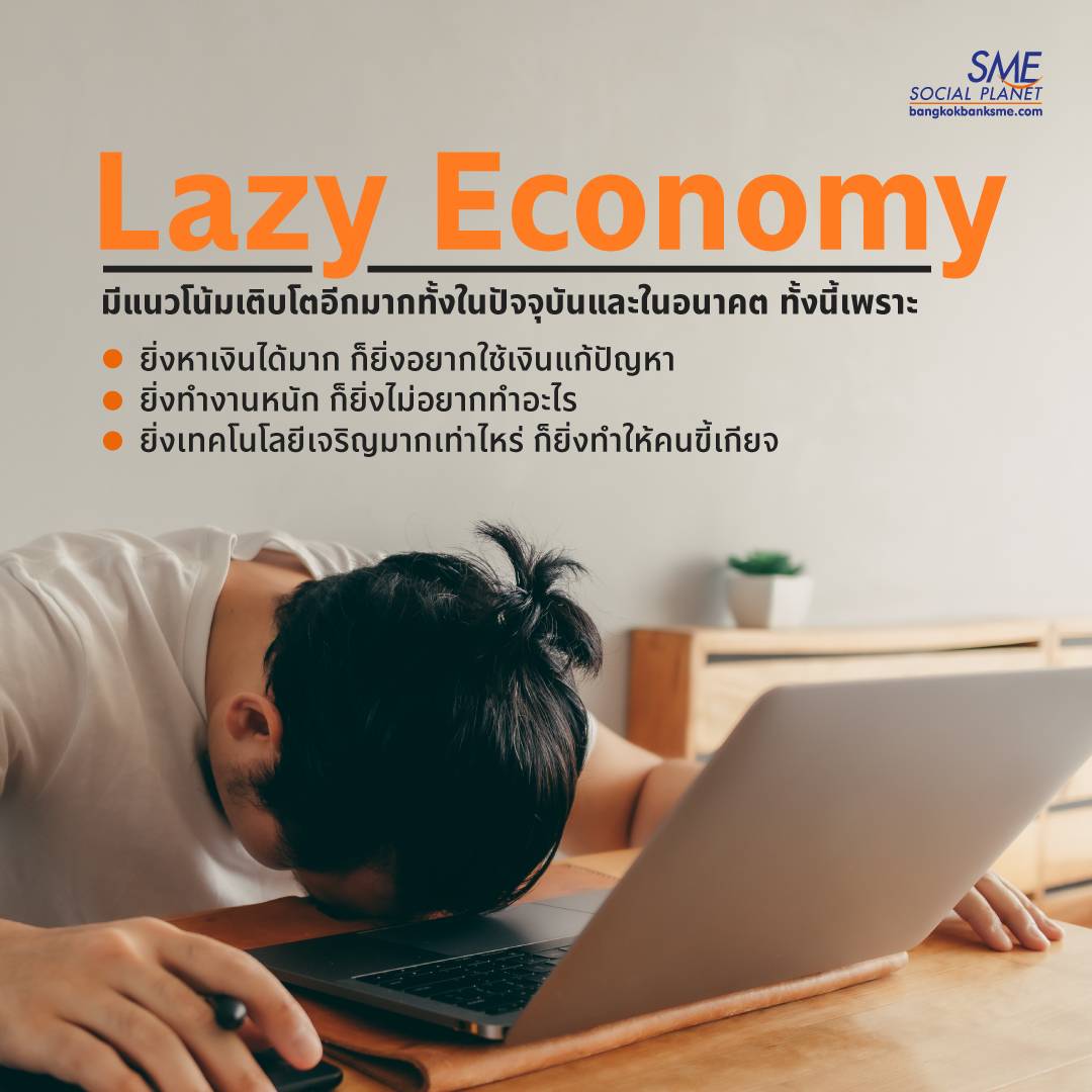 การเพิ่มขึ้นของพฤติกรรมผู้บริโภคที่เต็มใจจ่ายและพร้อมใช้เงินแก้ปัญหาเพื่อแลกกับความสะดวกสบาย เป็นหนึ่งในกลไกสำคัญในการขับเคลื่อนเศรษฐกิจที่เรียกว่า Lazy Economy เทรนด์ที่เติบโตอย่างรวดเร็วมาก โดยเฉพาะตั้งแต่มีการแพร่ระบาดของ COVID-19 ที่สร้างเศรษฐกิจวิถีใหม่ไปทั่วโลก และยังมีสถิติที่น่าสนใจพบว่า ธุรกิจสตาร์ทอัพทั่วโลกกว่า 34% ทำธุรกิจเพื่อสนับสนุนคนขี้เกียจอีกด้วย
