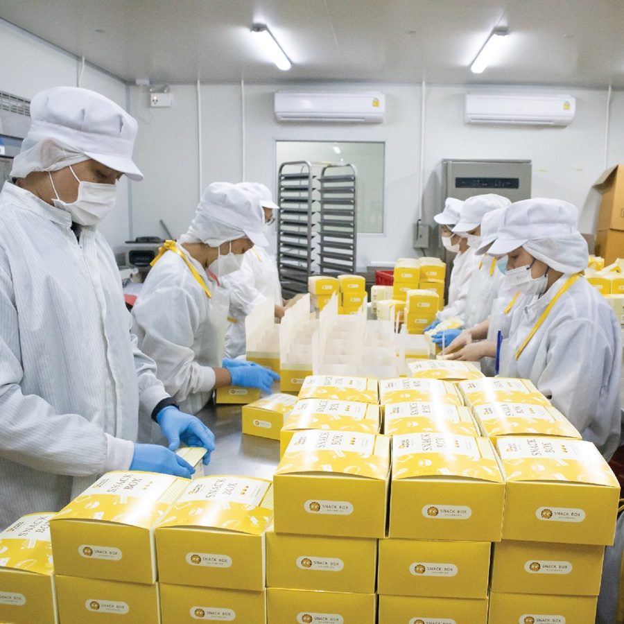 จากร้านเบเกอรี่ พัฒนาสู่ Snack Box และ OEM ปัจจุบัน เรารับจ้างผลิตขนมให้ร้านคาเฟ่ และโรงแรมระดับ 3-4 ดาว เพราะคาเฟ่มักจะโฟกัสเรื่องรสชาติกาแฟเป็นหลัก ส่วนขนมหรือเบเกอรี่ให้เป็นหน้าที่ของเราที่เป็นผู้เชี่ยวชาญ สำหรับโรงแรม เราเห็นโอกาสจากช่วงหลังโควิด ธุรกิจโรงแรมส่วนใหญ่จะหันมาโฟกัสกับ Core Business แล้วตัดเรื่องครัวเบเกอรี่ออก เราจึงเข้าไปนำเสนอว่า แบรนด์เราสามารถผลิตและจัดส่งได้ ภายใต้งบประมาณของลูกค้า ครอบคลุมทั้งอาหารเช้า ขนมเบรคประชุมสัมมนา ซึ่งแนวคิดเหล่านี้ได้ กลายเป็นโมเดลธุรกิจที่ Win-Win ตอบโจทย์ทั้งเราและผู้ประกอบการที่สามารถได้แบรนด์เบเกอรี่ที่มีประสบการณ์กว่า 20 ปี มาดูแลสินค้าให้ ตามงบที่เขาตั้งไว้