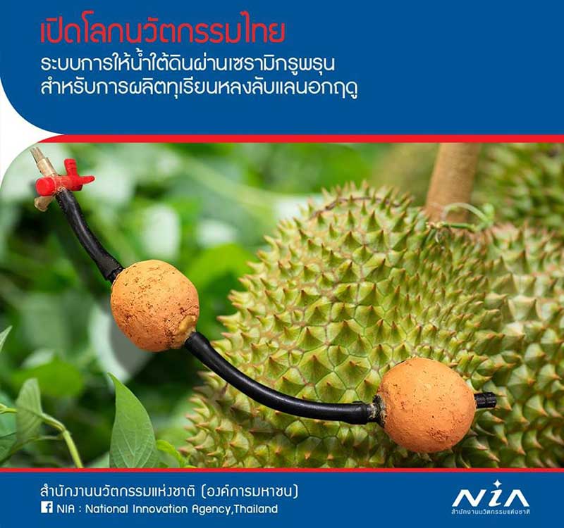 กลุ่มวิสาหกิจชุมชนผู้ปลูกและแปรรูปทุเรียนพันธุ์หลงลับแลจังหวัดอุตรดิตถ์ จึงได้ร่วมมือกับนักวิจัยพัฒนาระบบการให้น้ำใต้ดินผ่านเซรามิกรูพรุน