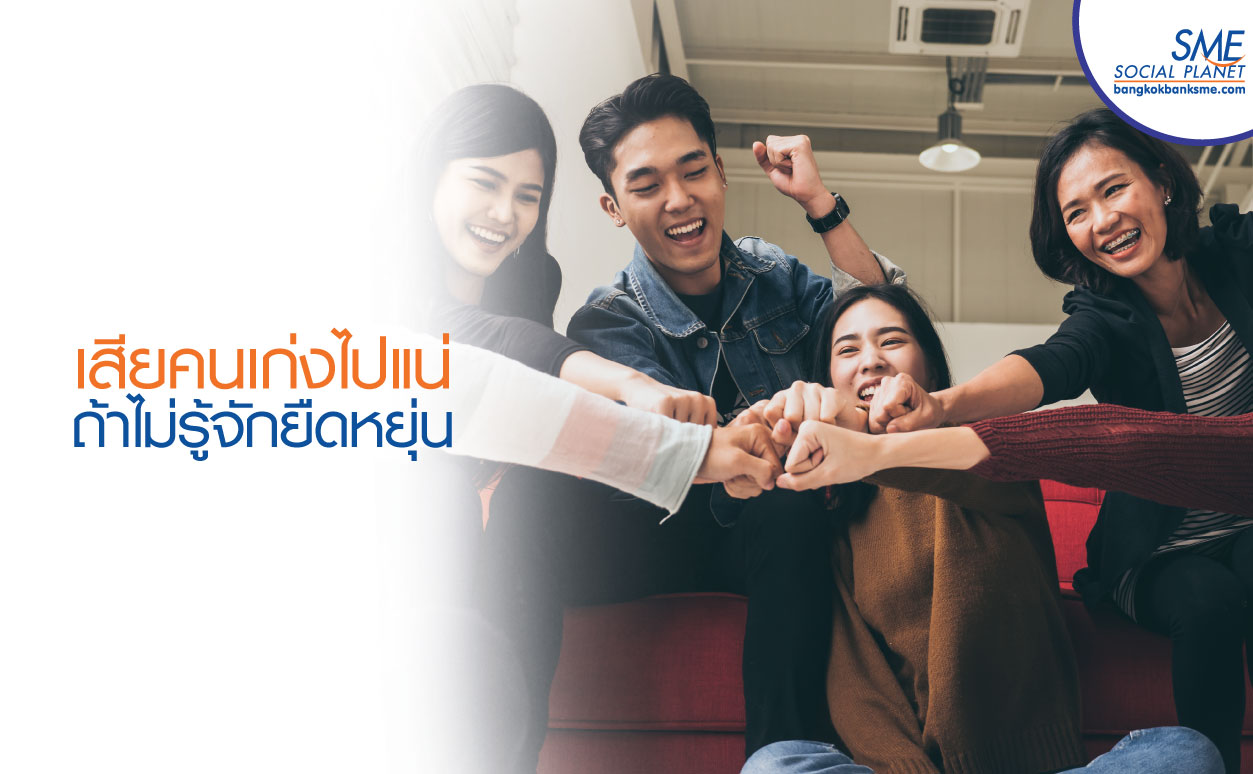 เห็นได้ชัดเจนว่าเทรนด์ของการทำงานจะเปลี่ยนไป องค์กรธุรกิจต้องรับมือ หากคิดจะรั้งคนรุ่นใหม่ ไฟแรงมากความสามารถไว้ได้ และแนวคิดความยืดหยุ่นนี่เองจะเป็นกุญแจสำคัญช่วยให้องค์กรต่างๆ มีโอกาสในการพัฒนาประสิทธิภาพการทำงานของพนักงานและดึงดูดพนักงานที่มีความรู้ความสามารถได้มากขึ้น ซึ่งความรู้ในส่วนนี้ผู้ประกอบการ SMEs ที่กำลังปรับปรุงด้านทรัพยากรบุคลต้องเข้าใจพฤติกรรมของการทำงานในรูปแบบปัจจุบัน
