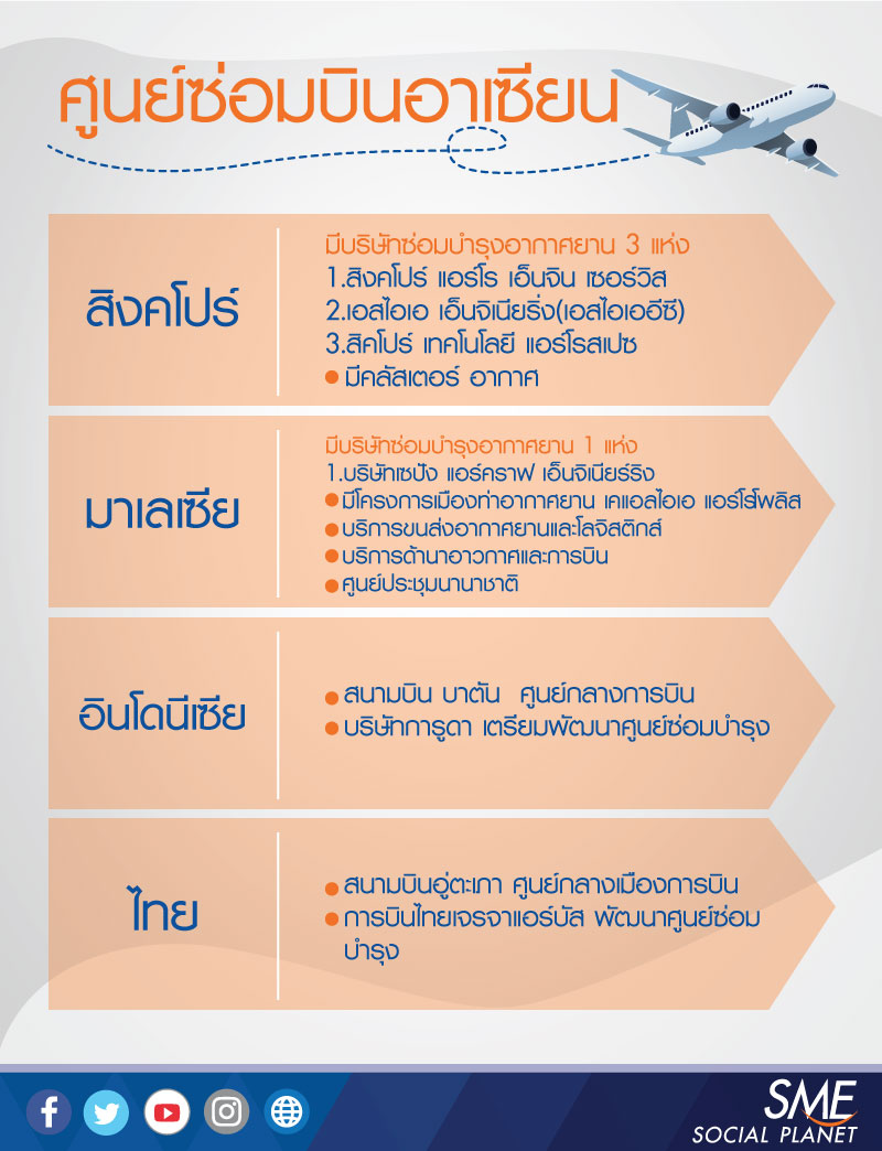 1 ในภูมิภาคเอเชียตะวันออกเฉียงเหนือ เช่นเดียวกับประเทศไทยก็ออกมาประกาศตัวจะผลักดันให้กลายเป็นศูนย์กลางซ่อมบำรุงอากาศยานสำคัญของอาเซียนและของโลก