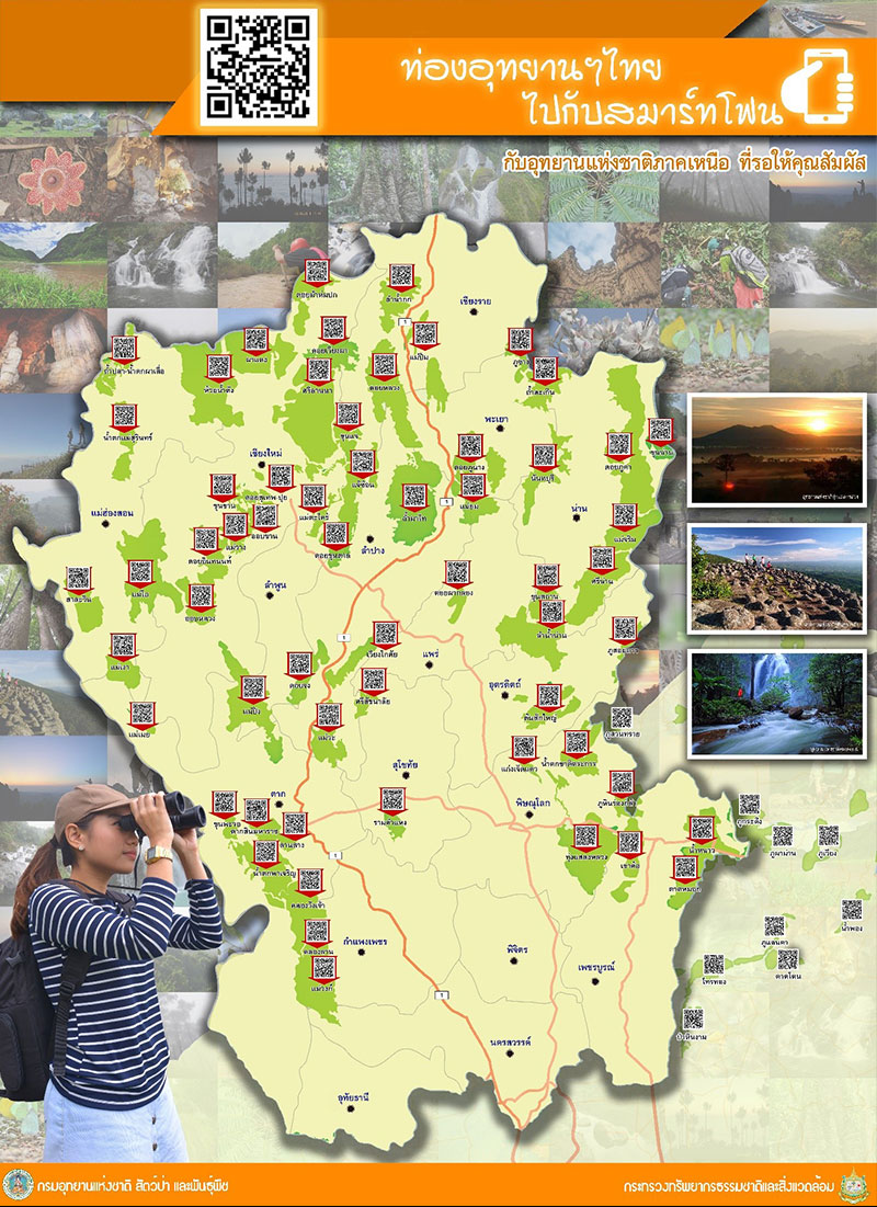 ในพื้นที่อุทยานแห่งชาติ 147 แห่งทั่วประเทศ ปัจจุบันอยู่ระหว่างการพัฒนาจัดทำ QR Code ในการเชื่อมโยงไปถึงแหล่งท่องเที่ยวภายในอุทยานแห่งชาติแต่ละแห่งได้โดยตรง