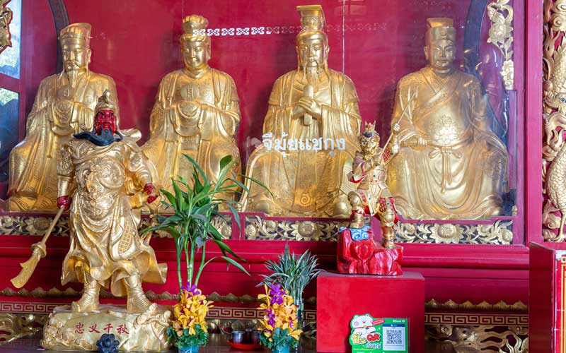 วิหารเทพเจ้า เป็นบริเวณที่มีคึกคักมาเพราะมีคนมาไหว้เพื่อแก้ปีชงมากที่สุด ประกอบด้วยเทพเจ้า
