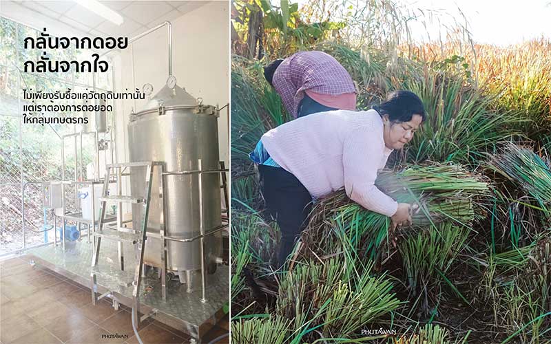 รวมทั้งการนำวัตถุดิบมาสกัดที่กรุงเทพฯ ก็เป็นเรื่องยาก ดังนั้นสิ่งที่ภูตะวันทำก็คือมอบเครื่องสกัดน้ำมันหอมระเหยให้กับเกษตรกร