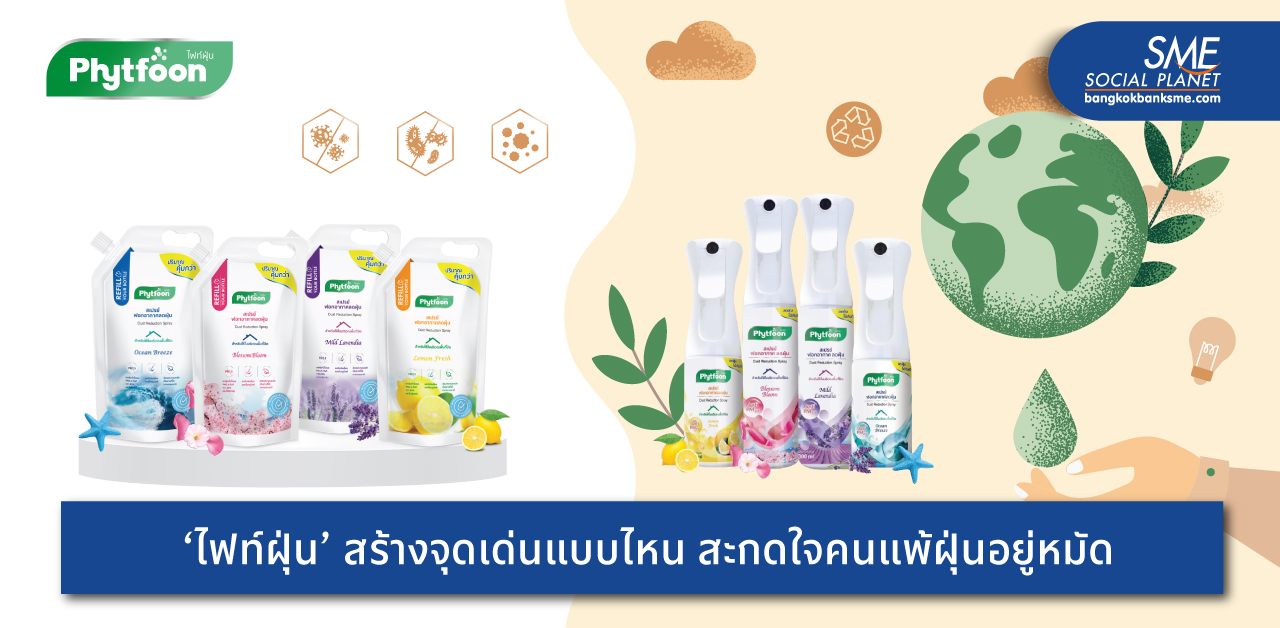 จาก Pain Point การเป็นภูมิแพ้ของคนในครอบครัวของ คุณชลิตา มุ่งวิวัฏ ประธานบริหาร บริษัท เพนทา อินโนเทค จำกัด เกิดเป็นแนวคิดในการอยากสร้างผลิตภัณฑ์ที่แตกต่างจากตลาด เพื่อตอบโจทย์ไลฟ์สไตล์การใช้ชีวิตของคนในยุคปัจจุบันที่ต้องเผชิญกับฝุ่นอยู่ตอดเวลา ก่อเกิดผลิตภัณฑ์แบรนด์ ‘ไฟท์ฝุ่น’ (PhytFoon) สเปรย์ฟอกอากาศลดฝุ่น จากสารธรรมชาติ เพื่อลดปัญหามลพิษทางอากาศ
