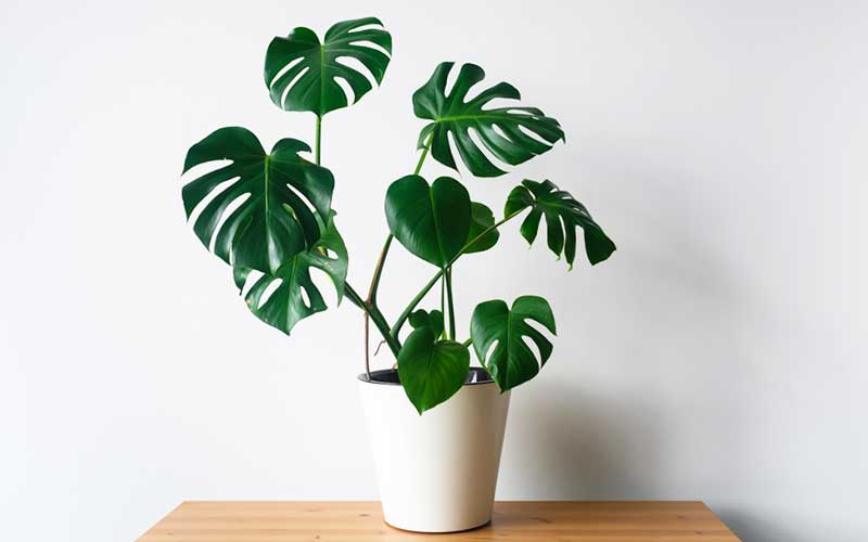 4. มอนสเตอร่า ได้ฉายา “ ราชินีแห่งใบไม้” เพราะแต่ละสายพันธุ์มีใบที่แปลกและสวยงามมากๆ จึงนิยมตัดใบไปปักแจกัน ปลูกได้ทั้งในอาคารสำนักงาน โรงแรม และบ้านอาศัย เพราะช่วยดูดสารพิษที่ปนเปื้อนในอากาศและดักจับฝุ่นละอองต่างๆ ที่ฟุ้งกระจายอยู่ในห้อง เป็นไม้พันธุ์อึดที่ดูแลง่าย ไม่ชอบแดดมาก ต้องการน้ำปานกลาง