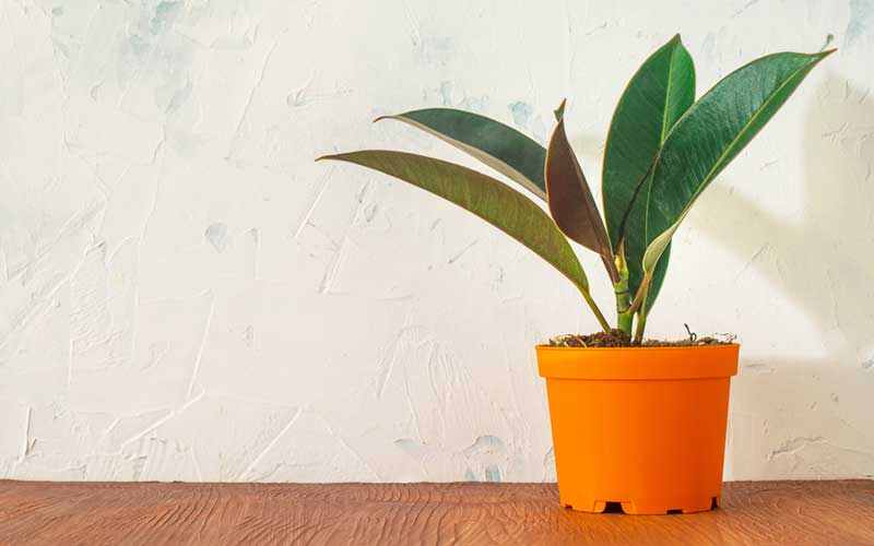 5. ยางอินเดีย ด้วยลักษณะที่ใบของต้นยางอินเดียมีความสวยงามโดดเด่น รูปทรงกลมมน ผิวใบมีความมันเงา หลังใบมีทั้งสีเขียวและสีแดงเข้ม แถมยังมีคุณสมบัติช่วยดักฝุ่นและดูดสารฟอร์มาดีไฮด์ได้อีก จึงกลายเป็นเสน่ห์ที่ต้นยางอินเดียกลายเป็นไม้ยอดนิยม เป็นไม้ที่ชอบแดดรำไร น้ำปานกลาง จึงเหมาะที่จะปลูกอยู่ในห้องนอน ห้องนั่งเล่นหรือห้องทำงาน