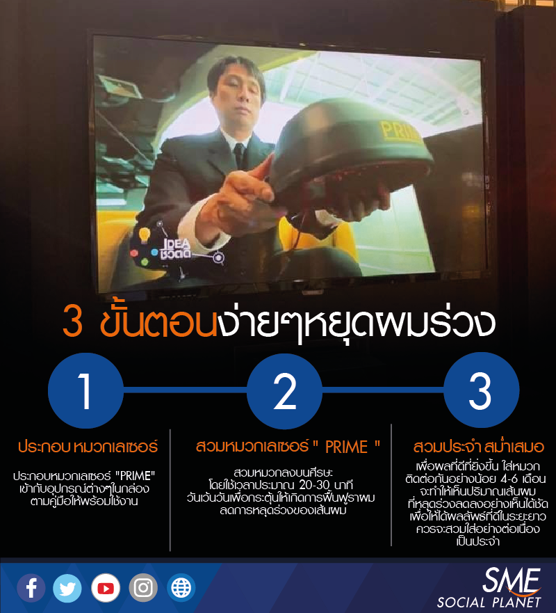 ผลิตภัณฑ์หมวกเลเซอร์ปลูกผม “PRIME” ถือเป็นมิติใหม่แห่งวงการธุรกิจ และสร้างมาตรฐานใหม่ในการพัฒนาธุรกิจของเหล่าผู้ประกอบการ SME ไทย ที่เกิดจากความสามารถของคนไทยล้วนๆ ควรค่าที่จะให้การสนับสนุนต่อไป