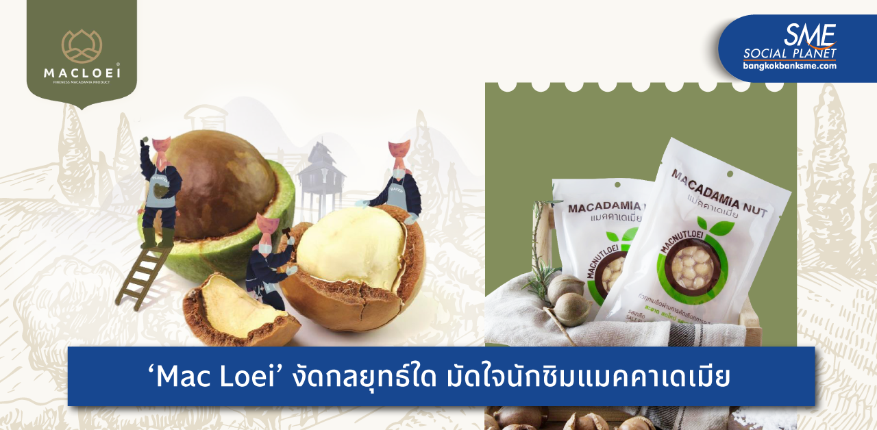 แมคคาเดเมียต้นกำเนิดจากเมืองนอก นำมาปลูกในเมืองไทยอย่างไร? ให้รสชาติอร่อยถูกปากผู้บริโภค Bangkok Bank SME ขอพาไปรู้จัก กลุ่มวิสาหกิจชุมชนแปรรูปผลผลิตทางการเกษตรบ้านบ่อเหมืองน้อย ต.แสงภา อ.นาแห้ว จ.เลย ซึ่งในอดีตได้เริ่มปลูกก่อนมีการแปรรูปแมคคาเดเมียตั้งแต่ปี 2546 พัฒนาคุณภาพเรื่อยมาจนทำให้แมคคาเดเมียไทยแบรนด์ ‘แมคเลย’ เป็นที่รู้จัก ดังไกลทั้งในเมืองไทยและต่างประเทศ