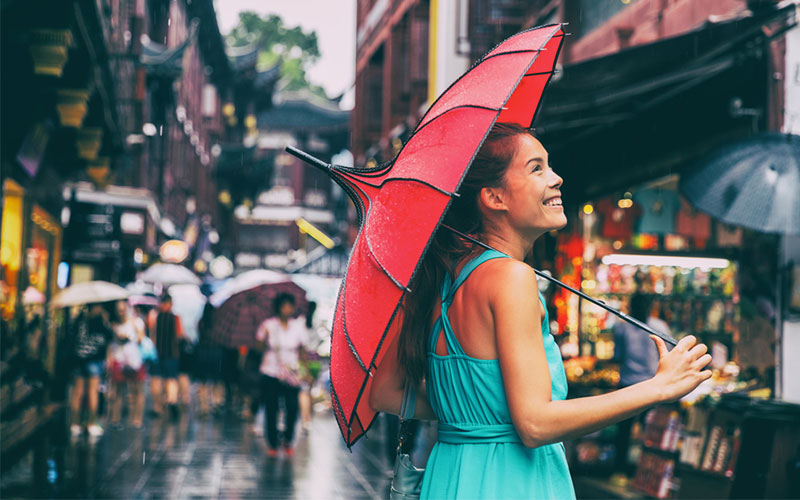 เช่น ร่ม หมวก เสื้อคลุมกันฝน รองเท้าบูท ซองใส่ของกันน้ำ เหล่านี้ต้องพกพาสะดวก ดีไซน์ที่สวย