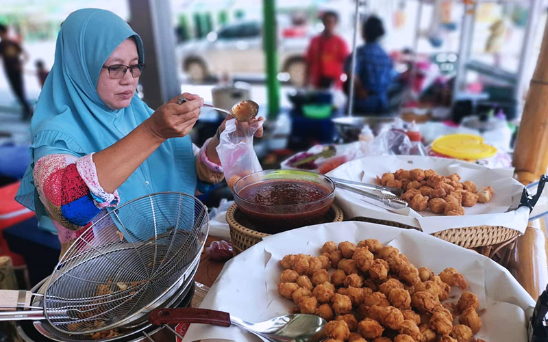 เสียงลูกชิ้นปลาสีขาวนวลน่ารับประทาน กระทบกับความร้อนของน้ำมันในกระทะส่งกลิ่นหอมอบอวลชวนหิว