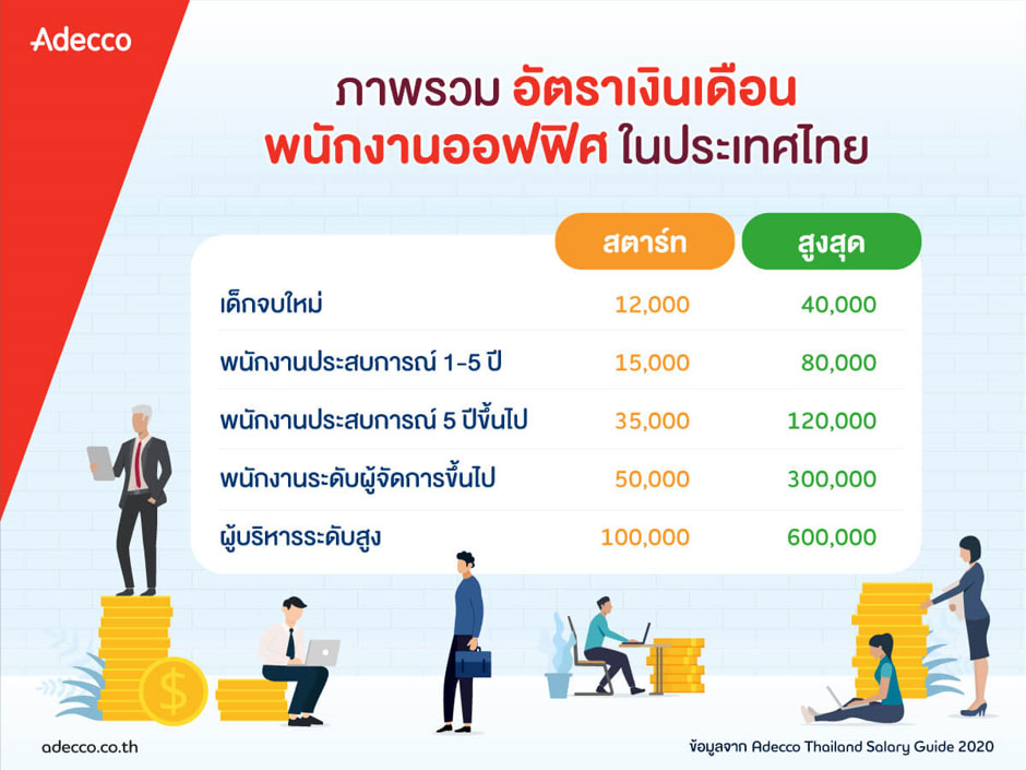 รายงานของบริษัท อเด็คโก้ ประเทศไทย ผู้ให้บริการทรัพยากรบุคคลแบบครบวงจร จัดทำ Salary Guide 2020 คู่มือฐานเงินเดือนประจำปี 2563 พบว่าอาชีพที่มีเงินเดือนเริ่มต้นสูงสุด ได้แก่ อาชีพในสาย IT ขณะที่เงินเดือนผู้บริหารเพิ่มสูงทุกสาขา สะท้อนความต้องการบุคลากรเพื่อปรับตัวธุรกิจสู่ยุคดิจิทัล (Digital Transformation)