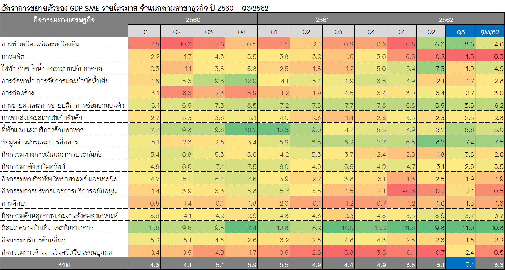 สำหรับมูลค่า GDP SMEs ไตรมาสที่สามของปี 2562