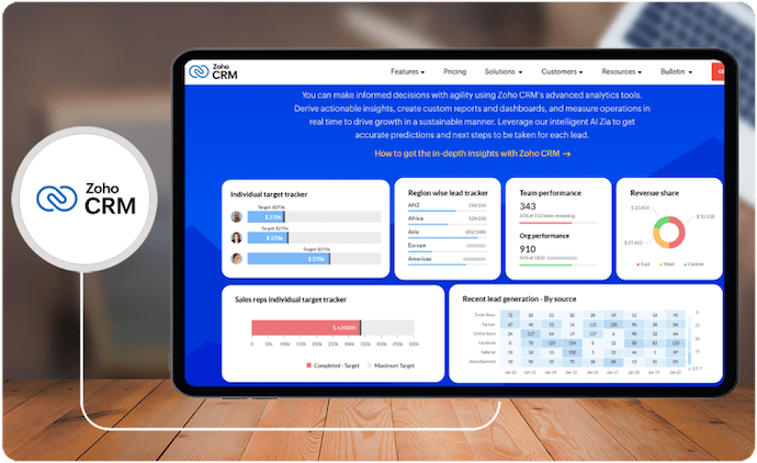 Zoho CRM เป็นระบบ CRM บริหารจัดการลูกค้าสัมพันธ์ที่โดดเด่น ในเรื่องของความสามารถในการปรับแต่งและฟีเจอร์ที่ครบครัน นอกจากนี้ยังมีชุดโปรแกรมใน Ecosystem มากกว่า 40 โปรแกรม ซึ่งถูกออกแบบมาเพื่อช่วยให้ธุรกิจทุกขนาดสามารถจัดการงานขาย การตลาด และการบริการลูกค้าได้อย่างมีประสิทธิภาพ (ต่อกัน)