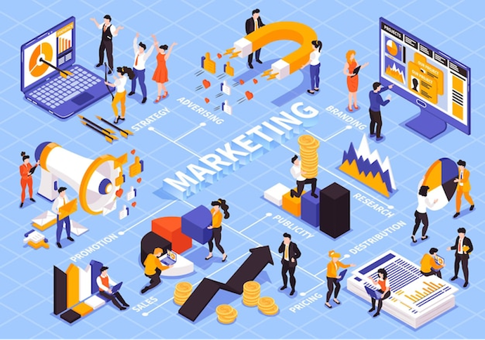 การตลาดคือกระบวนการที่ครอบคลุมทั้งหมดตั้งแต่การวิจัย การวางแผน และการสร้างคุณค่าของสินค้าเพื่อตอบสนองความต้องการของลูกค้า มีเป้าหมายเพื่อสร้างและรักษาความสัมพันธ์ที่ดีกับลูกค้าในระยะยาว