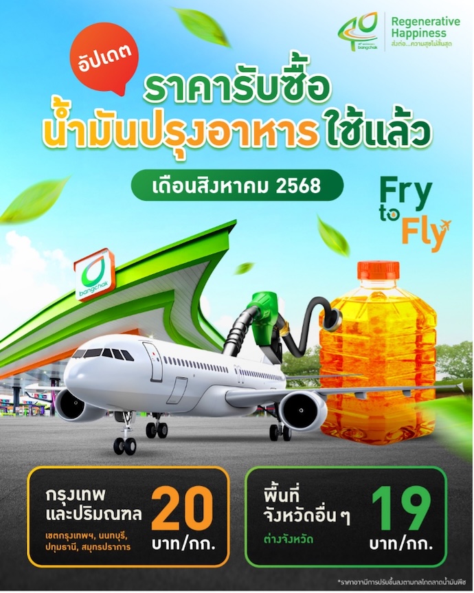 เปลี่ยนของเหลือเป็นพลังงานใหม่: บางจากนำน้ำมันปรุงอาหารใช้แล้วมาผลิตเป็นน้ำมันเครื่องบินยั่งยืน (Sustainable Aviation Fuel: SAF) ซึ่งไม่เพียงแค่ลดขยะ แต่ยังช่วยลดการปล่อยก๊าซคาร์บอนในอุตสาหกรรมการบินได้อย่างเป็นรูปธรรม