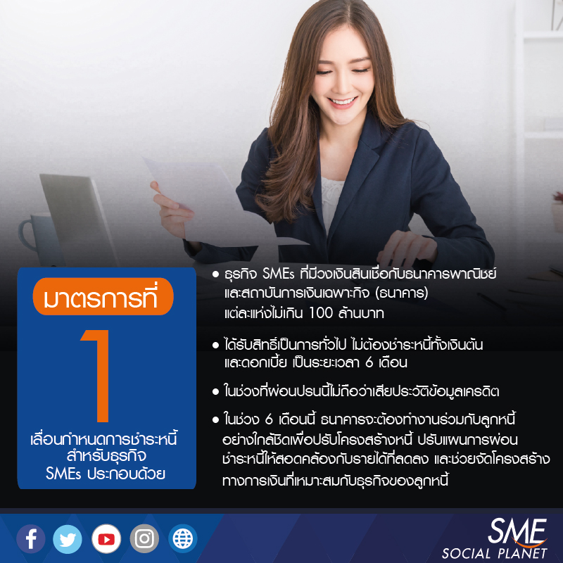 มาตรการที่ 1. การเลื่อนกำหนดการชำระหนี้สำหรับธุรกิจ SMEs ที่มีวงเงินสินเชื่อไม่เกิน