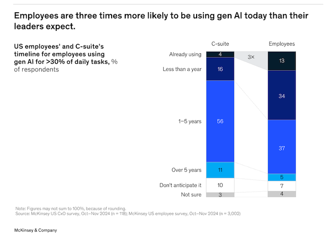 นอกจากนี้ 94% ของพนักงาน และ 99% ของผู้นำองค์กรระบุว่ามีความคุ้นเคยกับเครื่องมือ AI อยู่บ้างแล้ว