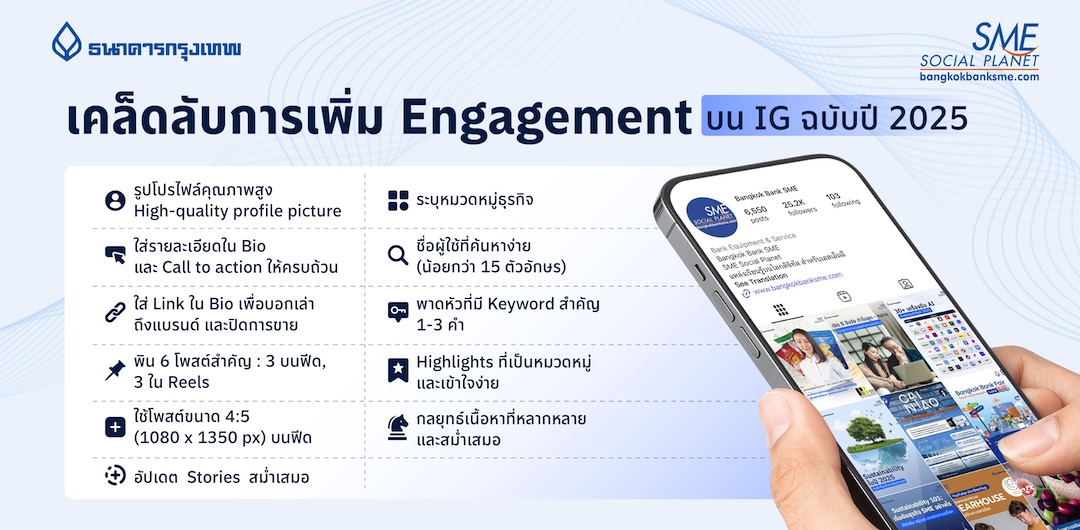 วันนี้ Bangkok Bank SME ขอแบ่งปันเคล็ดลับการเพิ่ม Engagement บน Instagram ฉบับปี 2025 ที่จะช่วยให้ธุรกิจของคุณโดดเด่นและเติบโตอย่างยั่งยืน