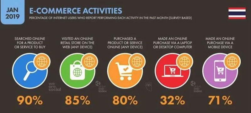 ข้อมูลนี้ สะท้อนพฤติกรรมการใช้อินเทอร์เน็ต ตลอดจนการใช้จ่ายของคนไทยส่วนใหญ่ในปัจจุบันได้เป็นอย่างดี ในแง่มุมของธุรกิจอีคอมเมิร์ซ การสร้างการรับรู้ และเข้าถึงผู้บริโภคในยุคนี้ จำเป็นต้องใช้ “การตลาดออนไลน์” ซึ่งเป็นทางรอดสำหรับธุรกิจอีคอมเมิร์ซในปัจจุบัน แต่การทำการตลาดให้เข้าถึงไลฟ์สไตล์ผู้บริโภคได้นั้น จะต้องใช้ทั้งช่องทาง และเครื่องมือที่ทรงพลัง ตลอดจนกลยุทธ์การตลาดออนไลน์ที่มีประสิทธิภาพ