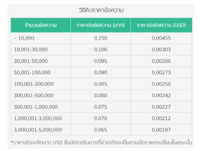 แพ็กเกจใหม่ จ่ายเท่าที่ใช้ เลือกส่ง Message ให้ถึงตรงกลุ่มผู้บริโภค เพื่อประสิทธิภาพสูงสุด แล้วจ่ายตามข้อความที่คุณเลือกส่งถึงผู้บริโภคเท่านั้น รวมถึงยังสามารถเชื่อมต่อกับระบบอื่นๆ ผ่าน API (Application Programming Interface) ได้ด้วย