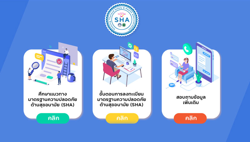 การท่องเที่ยวแห่งประเทศไทย (ททท.) จึงได้สร้างความมั่นใจในการท่องเที่ยวใหม่ ด้วยการดึง 10 ประเภทธุรกิจเกี่ยวเนื่องท่องเที่ยวทั้งระบบ เข้าร่วมโครงการ Amazing Thailand Safety & Health Administration (SHA) เพื่อสร้างบรรทัดฐานใหม่การให้บริการด้านการท่องเที่ยวของไทย ภายใต้ความร่วมมือของกระทรวงการท่องเที่ยวและกีฬา และกระทรวงสาธารณสุข