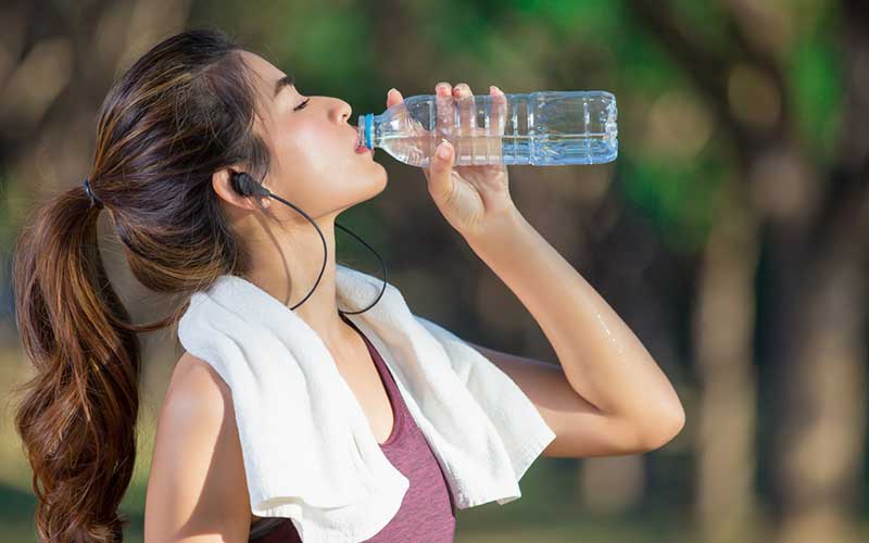 6. น้ำกับคนออกกำลังกาย : ขณะที่ออกกำลังกายร่างกายจะสูญเสียน้ำไปจากเหงื่อที่ขับออกมา จึงจำเป็นจะต้องรีบเติมน้ำเข้าไปทดแทน เพราะถ้าปล่อยให้ร่างกายขาดน้ำเพียงเล็กน้อย จะทำให้ประสิทธิภาพในการทำงานของอวัยวะต่างๆ ลดลงเช่นกัน ดังนั้นควรดื่มน้ำก่อนออกกำลังกายสัก 30 นาที และระหว่างการออกกำลังกายถ้าหิวน้ำก็สามารถค่อยๆ จิบได้ที่ละน้อย และแน่นอนว่าหลังจากออกกำลังกายแล้วก็ควรจะดื่มน้ำอีกสัก 1 แก้วเพื่อทดแทนน้ำที่สูญเสียไปกับเหงื่อ