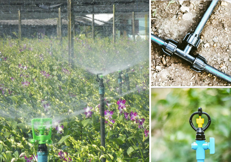 “ต้องถามลูกค้าว่าอยากได้สปริงเกลอร์แบบไหน อยากได้องศาน้ำหรือปริมาณน้ำแบบไหน เช่น สวนกล้วยไม้อยู่ใต้สแลนไม่มีกระแสลม ต้องการน้ำที่มีความสม่ำเสมอเพื่อจะได้รดต้นกล้วยไม้ให้ทั่วถึง เราก็ต้องออกแบบสปริงเกลอร์ให้เหมาะสม”